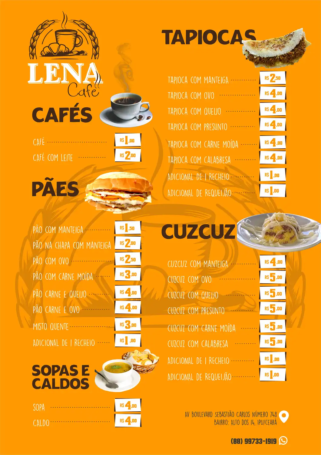 - Cardápios