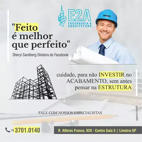 Layout Propaganda com a Frase o Feito é Melhor que o Perfeito criado para empresa de Engenharia e Arquitetura.