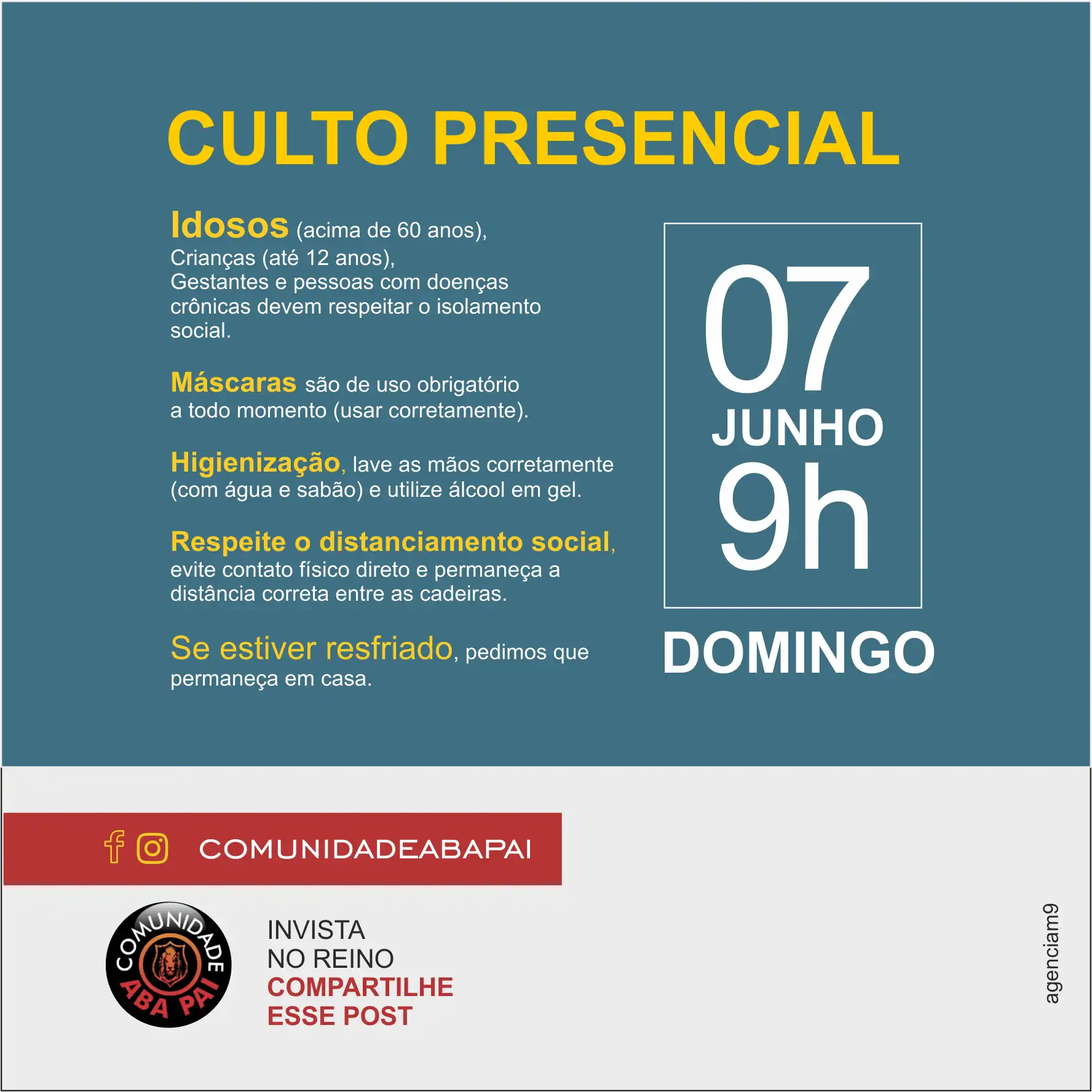 Propaganda Volta de Culto Presencial Igreja Evangélica
