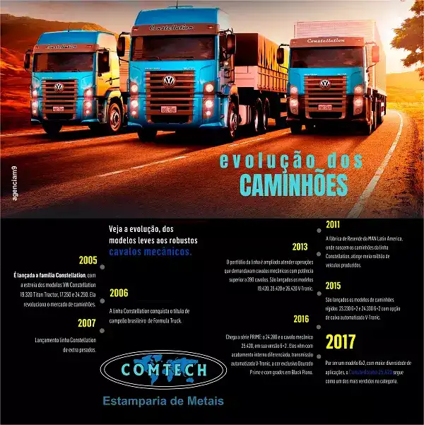 Infográfico sobre a Evolução dos Caminhões criado para Empresa de Estamparia de Metais