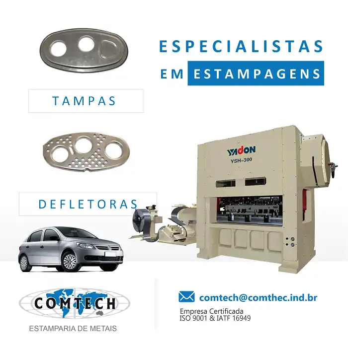 Propaganda Indústria Tampas de Metal para Setor Automotivo Tipo: Digital Formato: Quadrado Cliente: Comtech Segmento: Estamparia de Metais