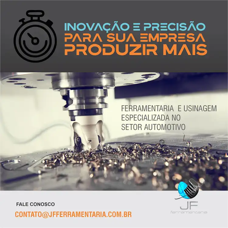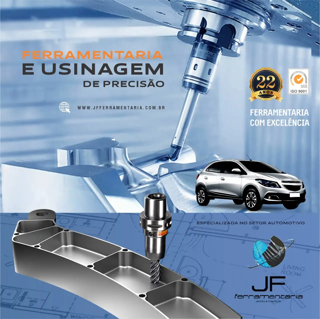 Propaganda Usinagem CNC Setor Automotivo Industrial Tipo: Propaganda para Rede SocialCliente: JF FerramentariaTema: Usinagem CNCCores: Azul, branco e cinzaMensagem: Propaganda para JF Ferramentaria, com serviços de ferramentaria e usinagem de precisão, especializada no setor automotivo, com 22 anos de experiência. Acesse www.jf.ferramentaria.com.br