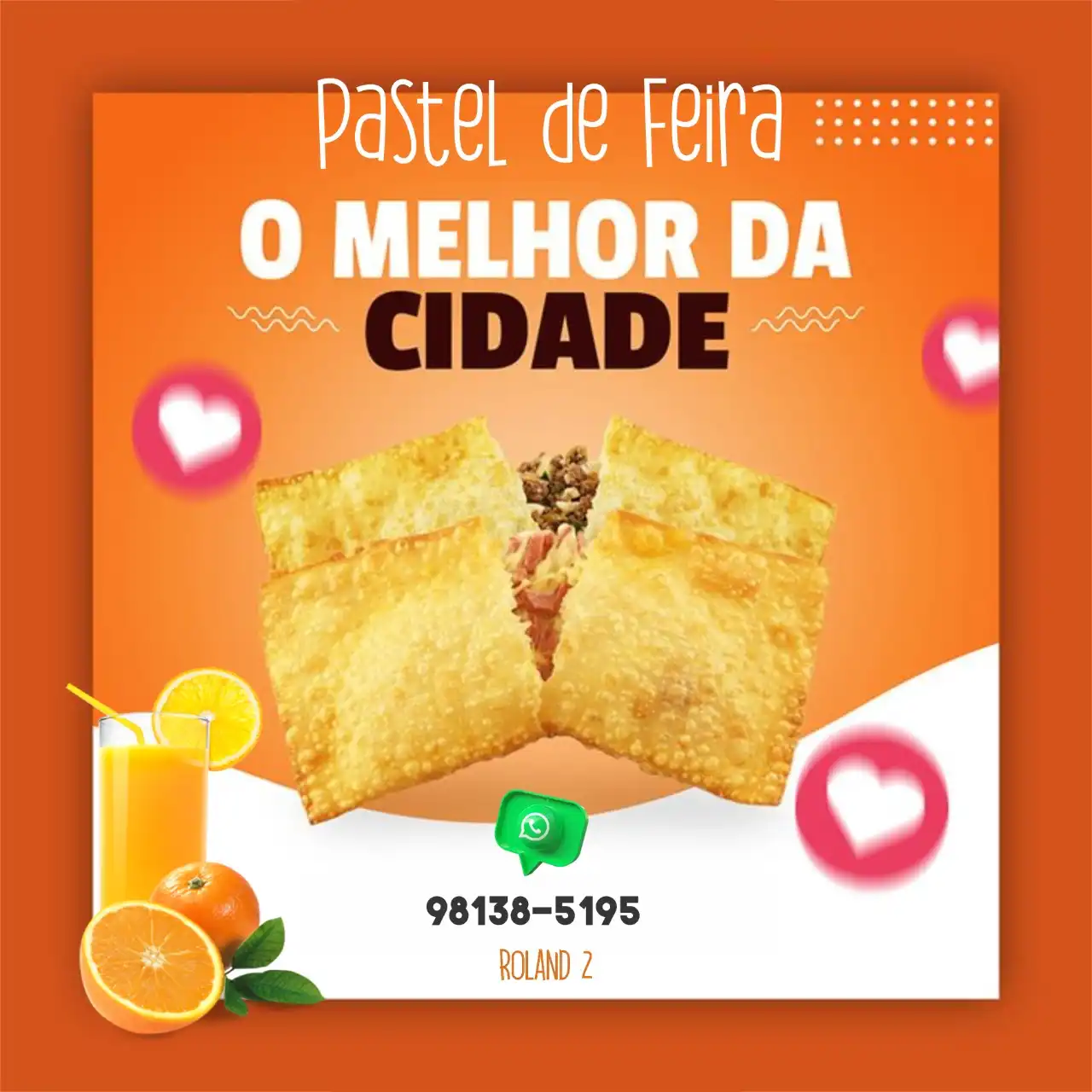 Propaganda Post Pastel com Suco de Laranja Tipo: Propaganda para Rede SocialCliente: Pastel de feiraTema: PastelCores: Laranja e brancoMensagem: Pastel de feira, o melhor da cidade!