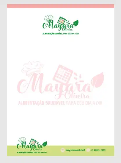 Timbrado Nutricionista Receitas Tipo: TimbradosCliente: Mayara Oliveira – NutricionistaTema: TimbradoCores: Verde, rosa e brancoMensagem: Elaboração de timbrado para nutricionista.