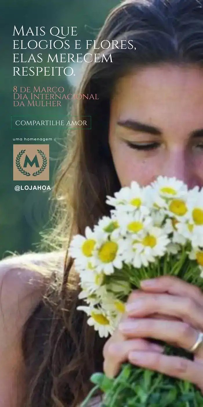 Cartaz Homenagem Dia Internacional da Mulher Tipo: Propaganda para CartazSegmento: ModaTema: Cartaz Homenagem Dia Internacional da MulherCliente: Loja HoaEstado: Minas GeraisCores: Rosa, Amarelo e Verde Mensagem: No Dia Internacional da Mulher, mais que elogios e flores, elas merecem respeito; 8 de Março. Dia Internacional da Mulher; Compartilhe AMOR; uma homenagem LOJA HOA.