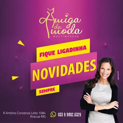 Propaganda Fique Ligadinha nas Novidades Tipo: Propaganda para InstagramSegmento: ModaTema: NovidadesCliente: Amiga da ModaEstado: Minas GeraisCores: Roxo e Amarelo Mensagem: Fique ligadinha nas novidades sempre.
