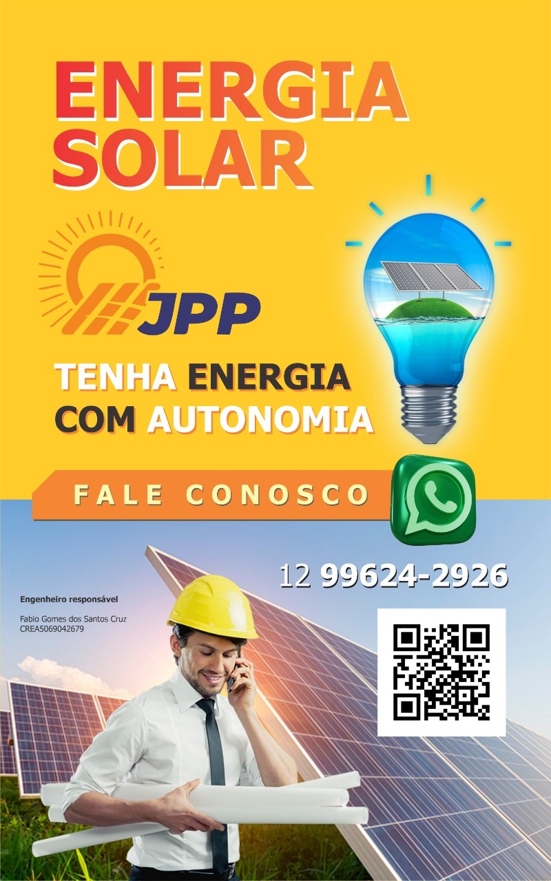 Banner Cartaz sobre Energia Solar autonomia em Energia Fotovoltaíca Tipo: BannerSegmento: Energia Solar, Energia FotovoltaícaCliente: JPP SoluçõesCores: Tons Amarelo e Cor de LaranjaMensagem: Energia Solar, tenha energia com autonomia.