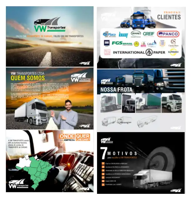 Catálogo para Transportadora de Carga Tipo: Catálogo Segmento: Transportadora Tema: Catálogo para Transportadora de Carga Cores: Tons Preto, Alaranjado e Verde Mensagem: A VW TRANSPORTES tem como missão, atender a seus clientes de forma transparente e muito próxima, pois acredita que a relação é quem possibilita ser melhor todos os dias, trazendo mais eficiência e … Ler mais Catálogo para Transportadora de Carga