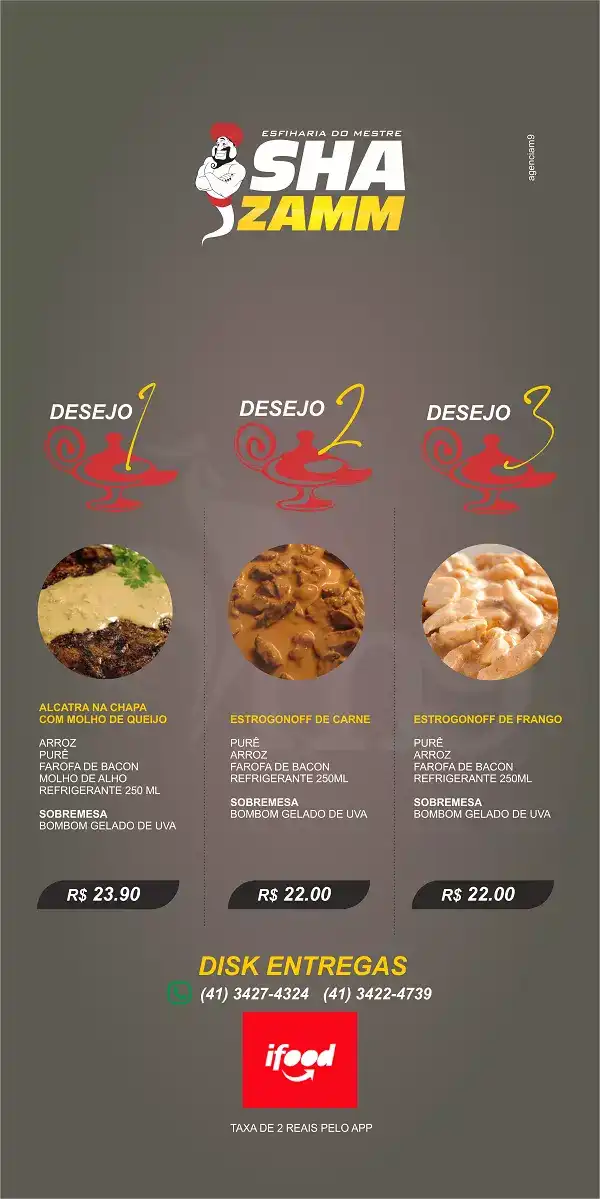 Propaganda Cardápio Delivery de Restaurante Tipo: Propaganda Cardápio DeliverySegmento: Restaurante Tema: Cardápio DeliveryCores: Cinza, Amarelo, VermelhoCliente: Shazamm Mensagem: Alcatra na chapa com molho de queijo; Estrogonoff de carne; Estrogonoff de frango.