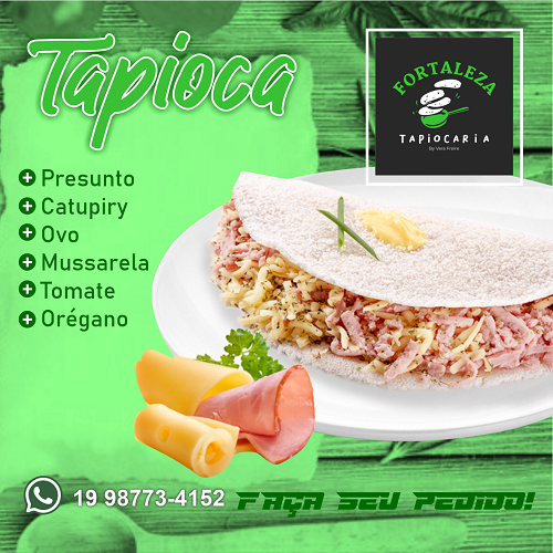 Propaganda de Tapioca de Calabresa com Cheddar e Tomate