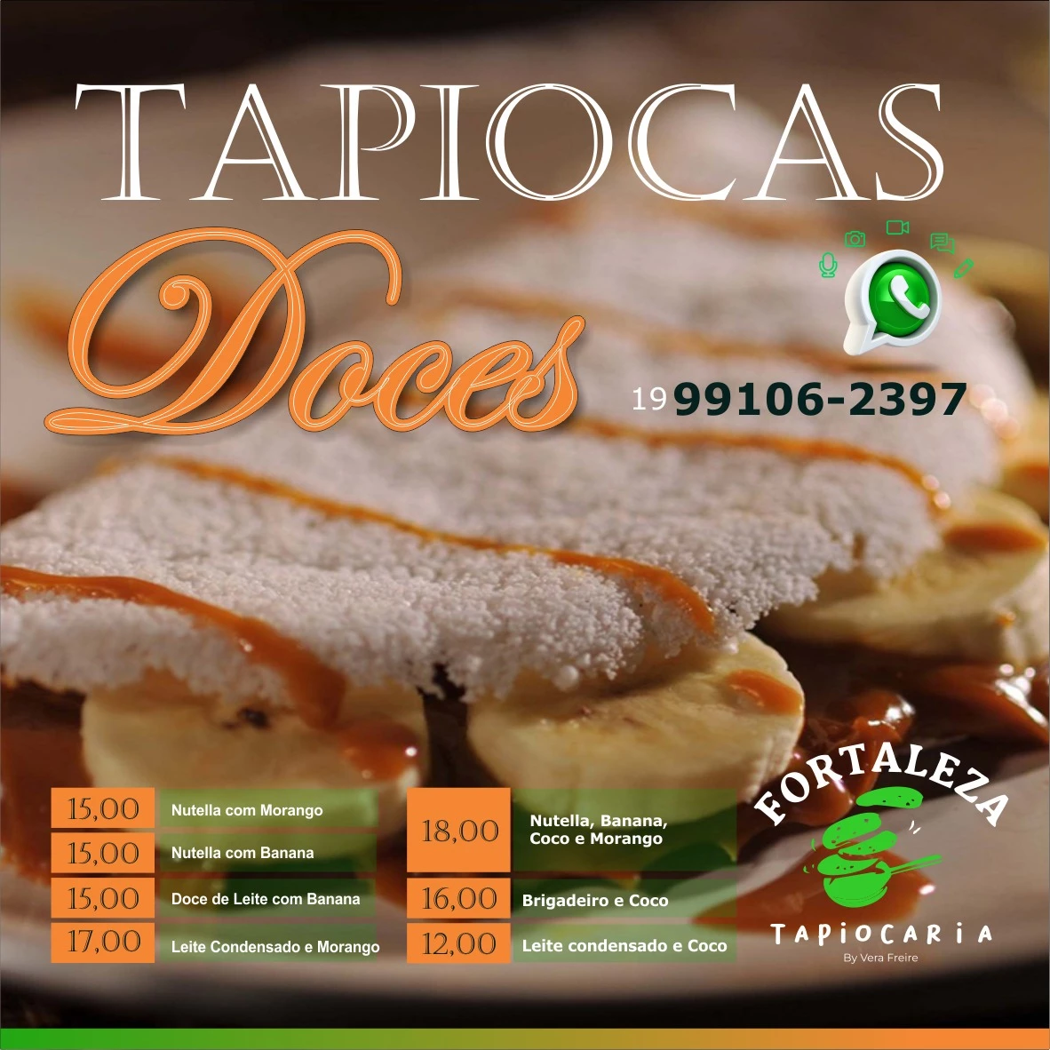 Propaganda para Tapiocaria sobre tipos de Tapiocas Doces