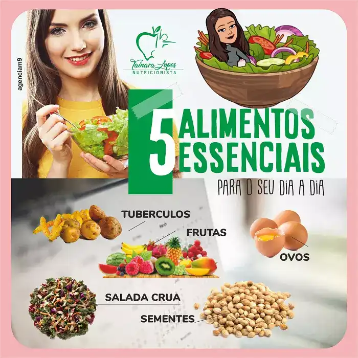Infográfico sobre Alimentos Essenciais para o dia a dia criado para Nutricionista de Florianópolis Santa Catarina