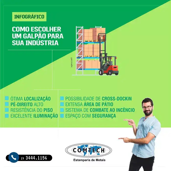 Layout Infográfico sobre logista de Peças Estamparia de Metais.