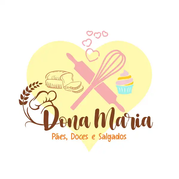 Logotipo Logomarca Pães e Doces Caseiros Tipo: Logotipo, Logomarca, Marca, Logo Segmento: Pães, Doces, Confeitaria, Alimentação Cores: Amarelo, Rosa e Azul tons pastel Marca: Dona Maria Pães, Doces e Salgados Tema: Logotipo Logomarca Pães e Doces Caseiros