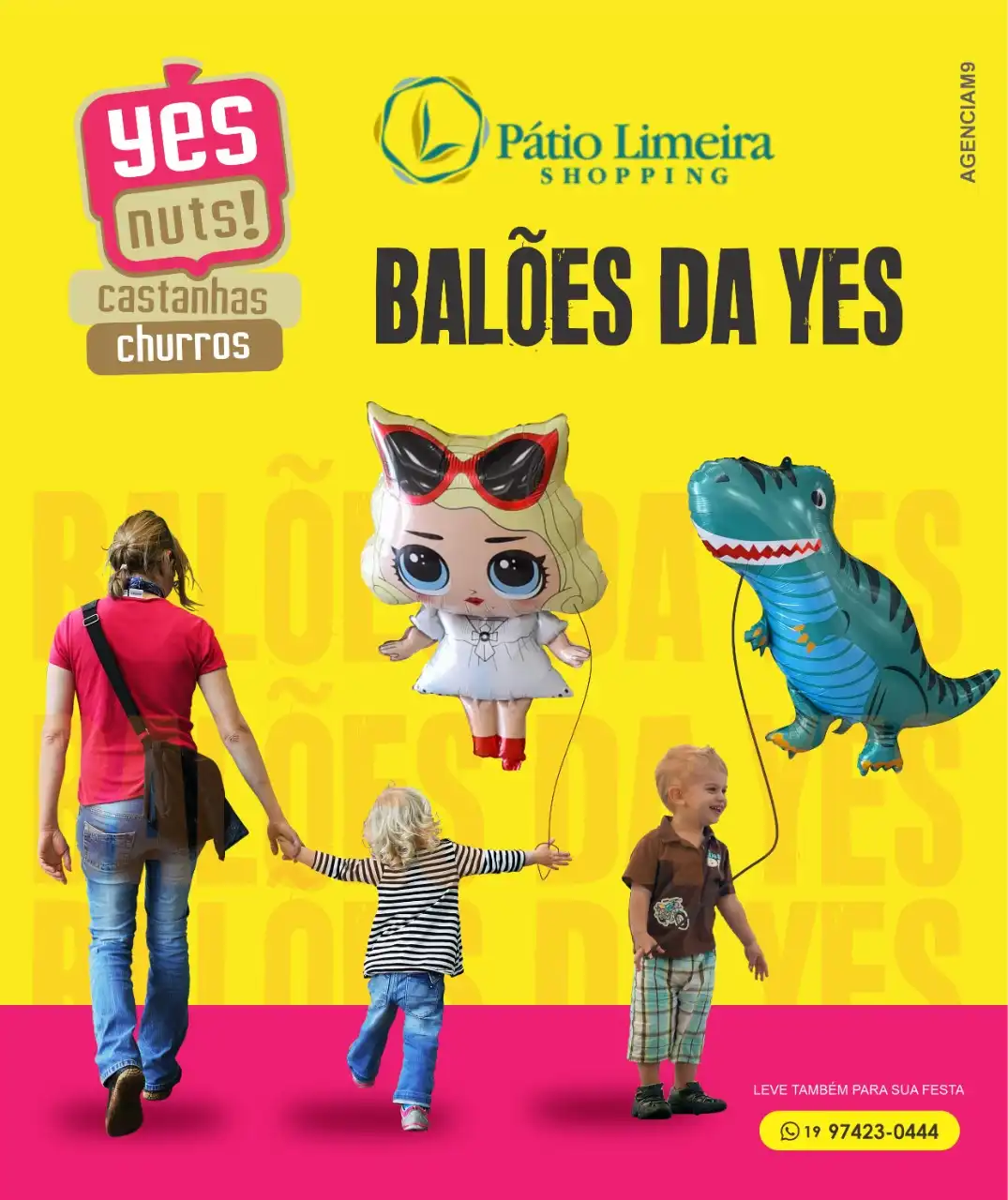Propaganda Balões de Personagens para Crianças e Festa Infantil à Gás Hélio Tipo: Propaganda para Rede SocialCliente: Yes Nuts!Tema: BalõesCores: Rosa e amareloMensagem: Balões da Yes!