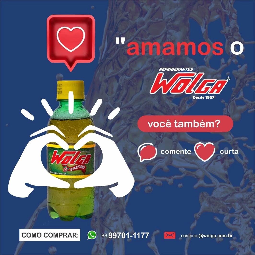 Texto na Publicidade: “Amamos o refrigerantes Wolga você também ? comente curta”