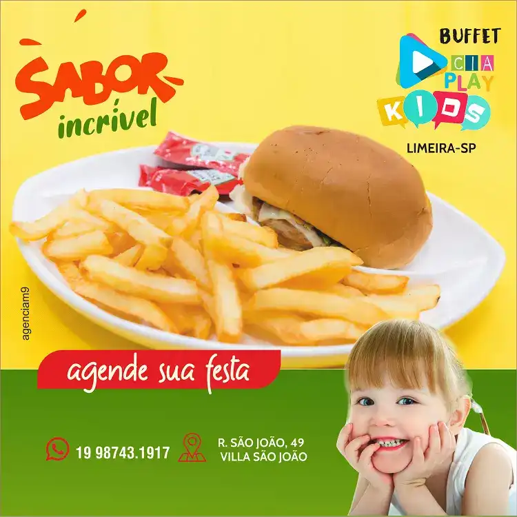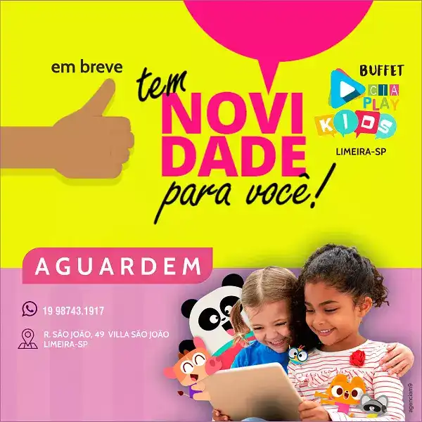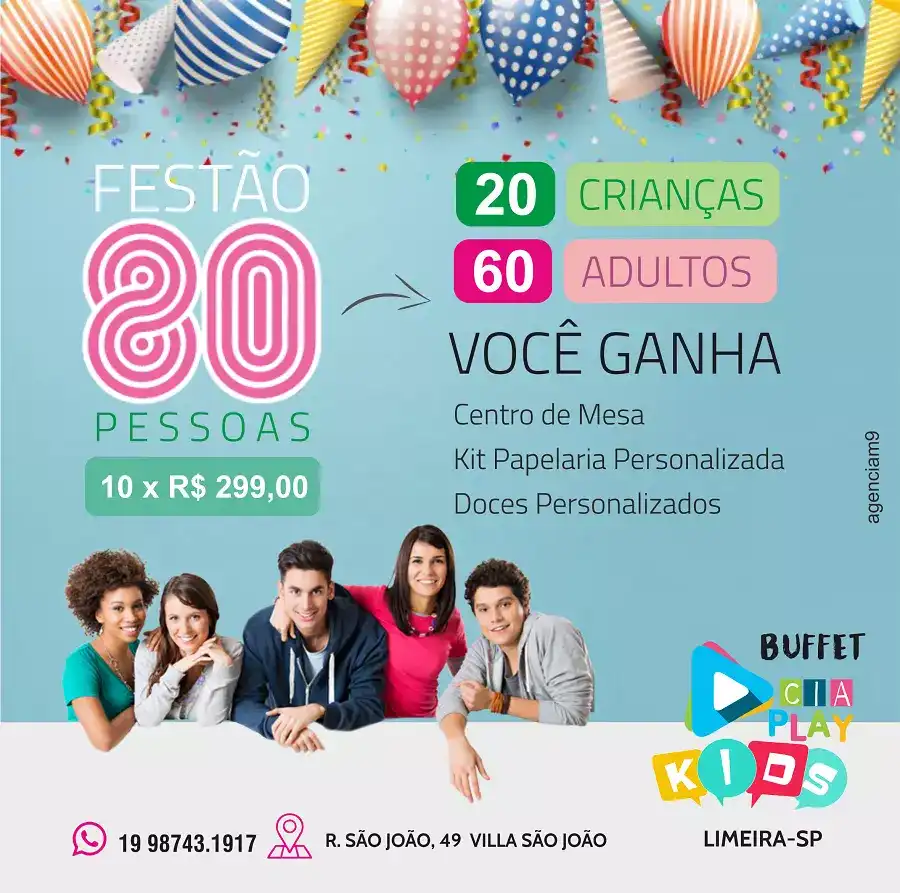 Propaganda de Festa de Aniversário Buffet Tipo: Propaganda para Instagram sobre Festa em BuffetSegmento: Buffet e AlimentaçãoTema: Festa de Aniversário em BuffetCidade: LimeiraEstado: São PauloCores: Azul, Verde e RosaCliente: Buffet Cia Play Kids Mensagem: Festa completa de aniversário no nosso Buffet é sempre inesquecível