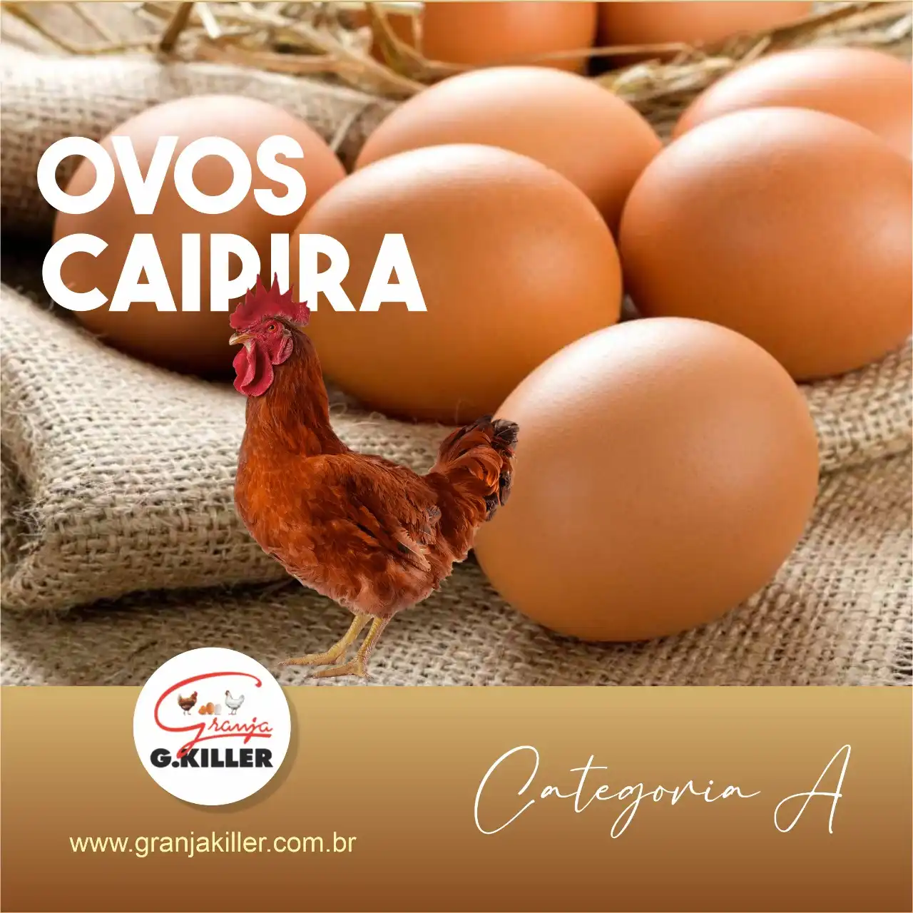 Propaganda Ovos Caipira de Granja Especializada Tipo: Propaganda para Rede Social Segmento: NutriçãoCliente: Granja KillerCores: MarromTexto na Publicidade: OVOS CAIPIRA