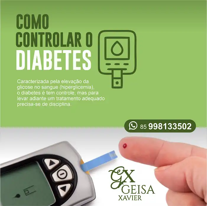 Mensagem: Como controlar o Diabetes. Caracterizada pela elevação da glicose no sangue, a hiperglicemia, o diabetes e tem controle, mas para levar adiante um tratamento adequado precisa-se de disciplina.