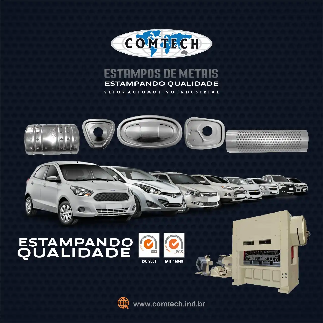 Propaganda Indústria de Estampos de Metais para Carros Tipo: Propaganda para Rede SocialCliente: Comtech Estampos de MetaisTema: Estampos de MetaisCores: Azul, preto e brancoMensagem: Propaganda, para indústria de estampos de metais no setor automotivo industrial; Estampando com qualidade; Contendo selo ISO 9001 e IATF 16949; Acesse o site: www.comtech.ind.br;