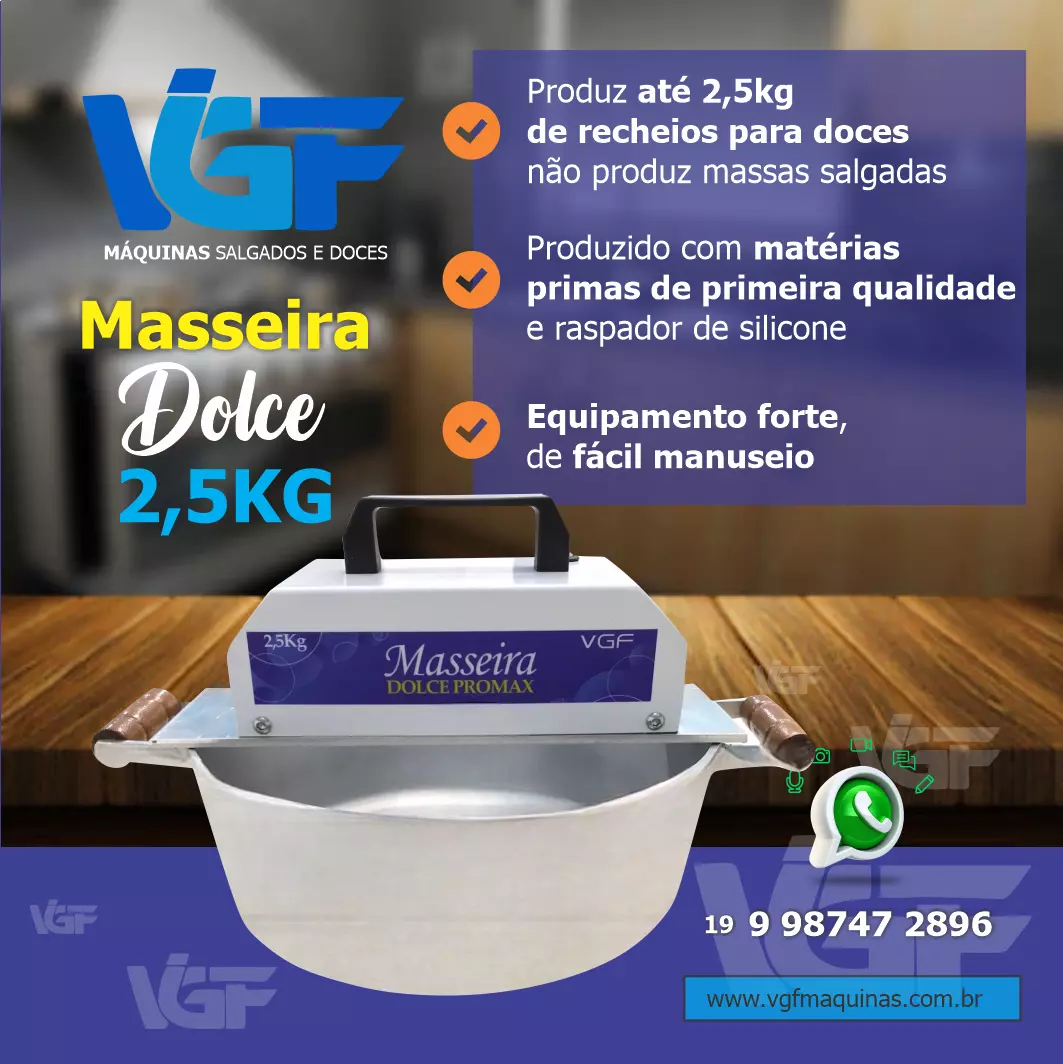 Propaganda Máquina de Fazer Doces Indústria que fabrica as máquinas Tipo: Propaganda para Rede SocialSegmento: Máquinas de SalgadosCores: Azul e LaranjaCliente: VGF Máquinas Masseira Dolce 2,5 Kg Produz até 2,5 kg de recheio para doces, não produz massas salgadas. Máquina Produzida com matérias primas de primeira qualidade e raspador de silicone. Equipamento Forte de Fácil … Ler mais Propaganda Máquina de Fazer Doces Indústria que fabrica as máquinas
