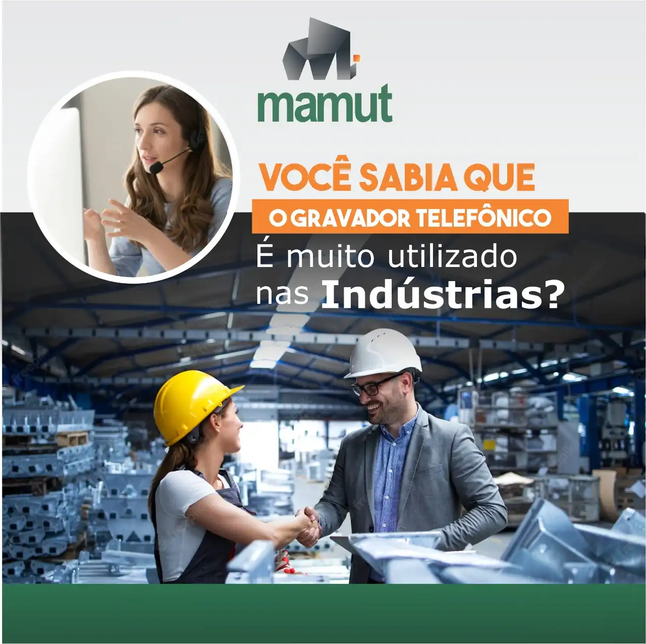 Propaganda Post Gravador Telefônico em Indústria Tipo: Propaganda para Rede SocialCliente: MamutTema: Gravador telefônicoCores: Verde, branco e laranjaMensagem: Você sabia que o gravador telefônico é muito utilizado nas indústrias?
