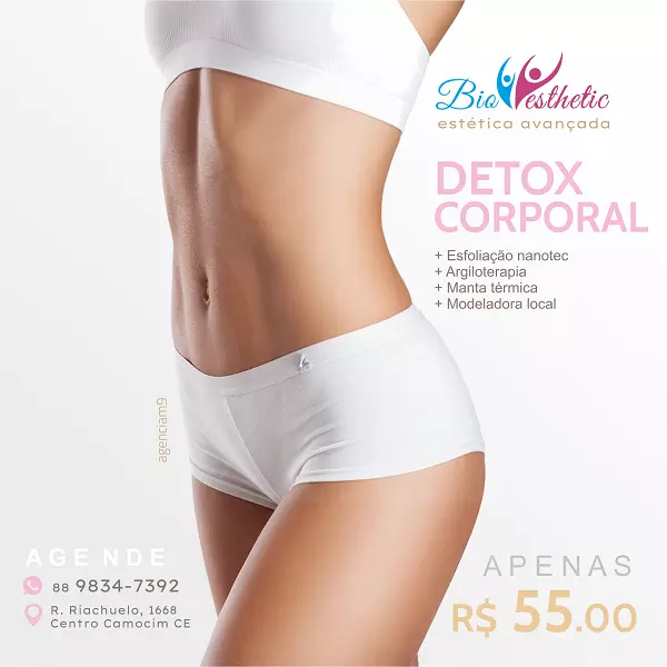 Mensagem: Detox Corporal: esfoliação nanotec, argiloterapia, manta térmica, modeladora local.