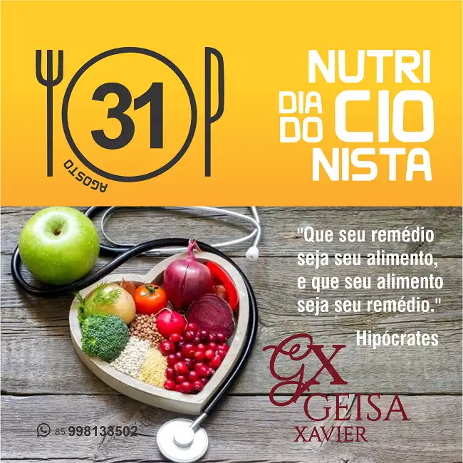 Mensagem: Dia 31 de Agosto Dia do Nutricionista. Que seu remédio seja seu alimento, e que seu alimento seja seu remédio. Frase de Hipócrates. Dia do Nutricionista é comemorado no dia 31 de Agosto.