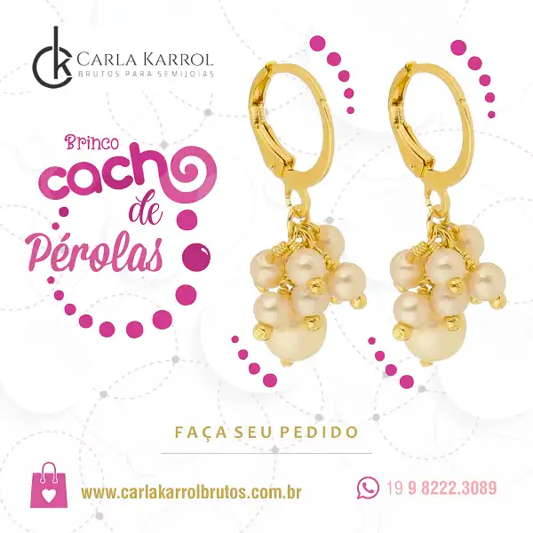 Propaganda Brinco Cacho de Pérolas Tipo: Propaganda para Facebook e Instagram Segmento: Joia, Semijoia, Brutos Tema: Brinco Cacho de Pérolas Cores: Rosa e Dourado, Cor Ouro e Pink Cliente: Carla Karrol Brutos para Semijoias Bruto para Semijoia de Brinco com Cacho de Pérolas. Conheça vários outros produtos de Brutos para Semijoias no site da cliente: … Ler mais Propaganda Brinco Cacho de Pérolas