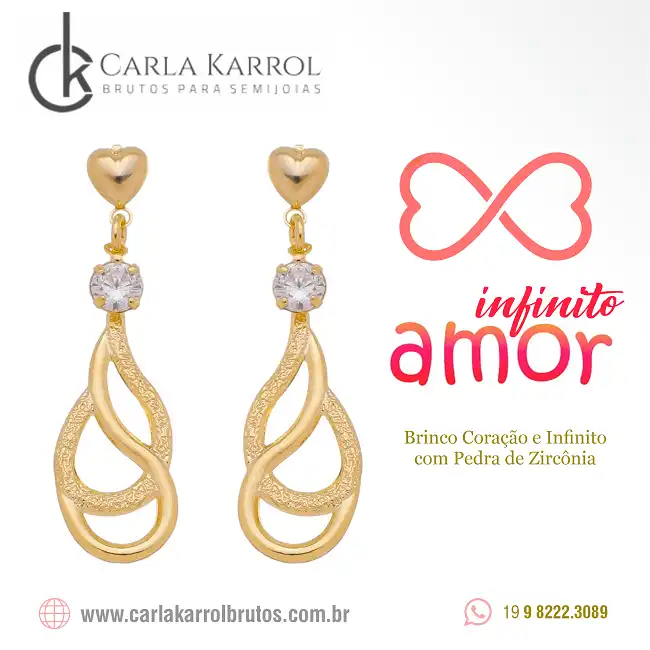 Propaganda Brinco Infinito Amor Tipo: Propaganda para Rede Social Segmento: Joias, Semijoias, Brutos, Brincos Tema: Brinco Infinito Amor Cliente: Carla Karrol Brutos Cores: Dourado e Rosa Mensagem: Brinco Infinito Amor, Brinco coraçºao e infinito com Pedras de Zircônia. Saiba mais: www.carlakarrolbrutos.com.br