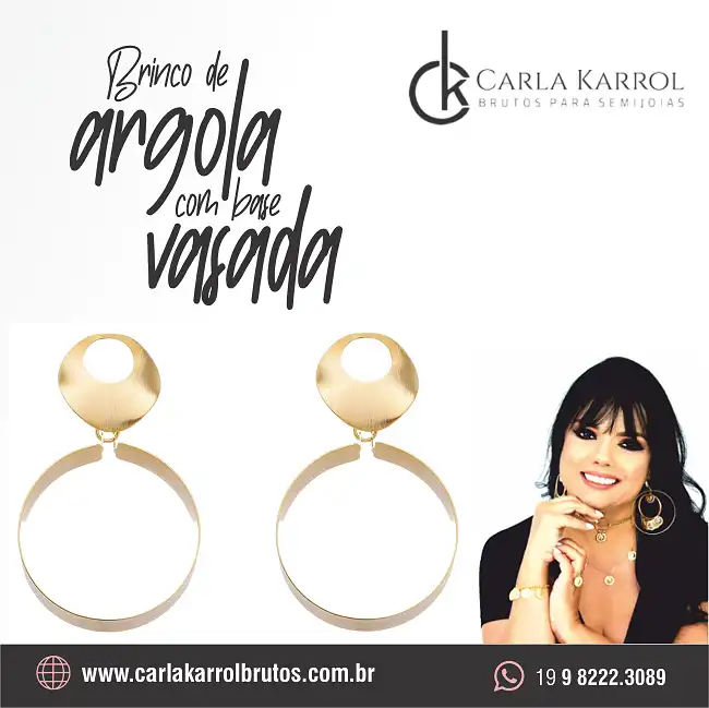 Propaganda Brinco de Argola Vazada Tipo: Propaganda para Rede Social Segmento: Joias, Semijoias, Brutos, Brincos Tema: Brinco de Argola Vazada Cliente: Carla Karrol Brutos Cores: Preto e Dourado Mensagem: Brico de Argola com base vazada. Saiba mais: www.carlakarrolbrutos.com.br