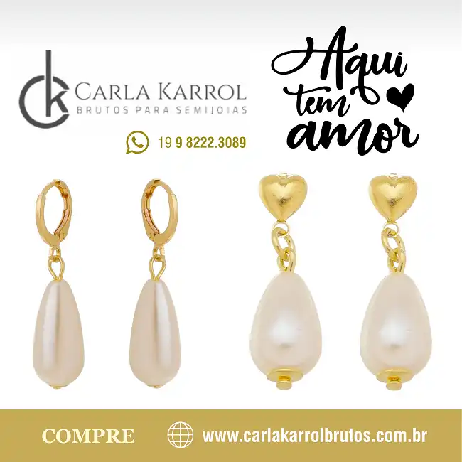 Propaganda Brincos em formato de Gotas em Brutos para Semijoias Tipo: Propaganda Rede SocialSegmento: Semijoias, Brutos, JoiasTema: Brincos em formato de Gotas em Brutos para SemijoiasCores: Prata e DouradoCliente: Carla Karrol Brutos para Semijoias Mensagem: Aqui têm amor! Acesse www.carlakarrolbrutos.com.br