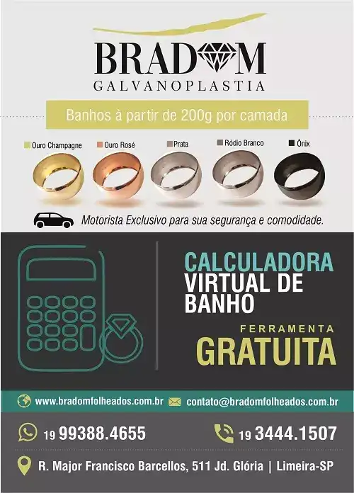 Layout Propaganda Folheto Flyer criado para empresa de Banhos de Semijoias e Serviços de Galvanoplastia Bradom 1.