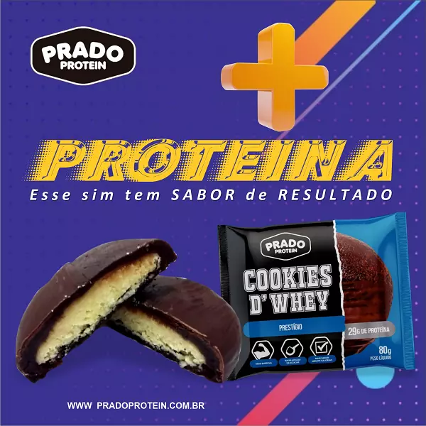 Propaganda Cookie de Whey Protein com mais Proteina Tipo: Propaganda para Rede Social Segmento: Nutrição, Nutricionista, Alimentação, Cookies Cliente: Prado Protein Cores: Azul e Amarelo Tema: Cookie de Whey Protein com mais Proteina Mensagem: Coockies de Whey mais proteína esse sim têm sabor de resultado. Formato: Feed Instagram e Facebook