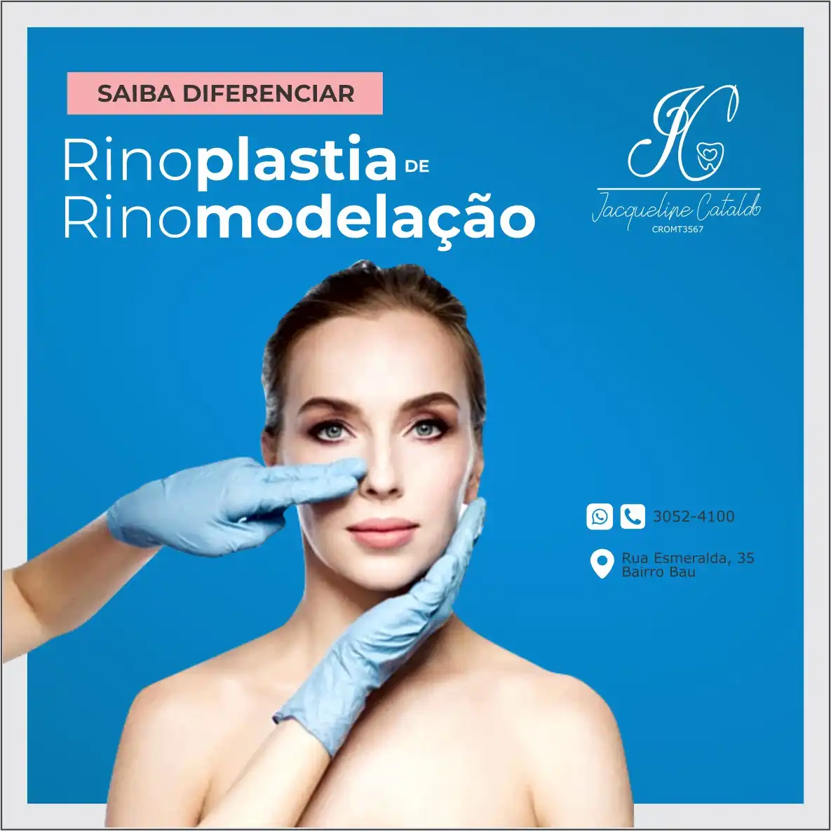 Propaganda Post Rinoplastia Rinomodelação Estética Facial Tipo: Propaganda para Rede SocialCliente: Jacqueline CataldoTema: Estética facialCores: Azul e brancoMensagem: Saiba diferenciar rinoplastia de rinomodelação.