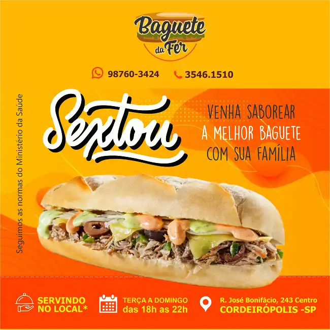 Mensagem: Venha saborear a melhor baguete com sua famÃlia. Saiba mais http://www.baguetedafer.com.br