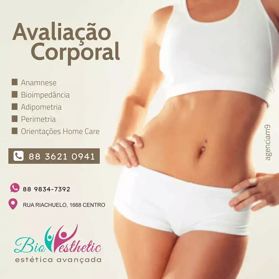 Propaganda Estética Corporal Feminina Tipo: Propaganda para Instagram sobre EstéticaSegmento: Estética CorporalTema: Avaliação Corporal FemininaCores: Marrom, Rosa e BrancoEstado: CearáCliente: Bio Esthetic Estética Avançada Mensagem: Avaliação Corporal; Anamnese; Bioimpedância; Adipometria; Perimetria; Orientações Home Care.