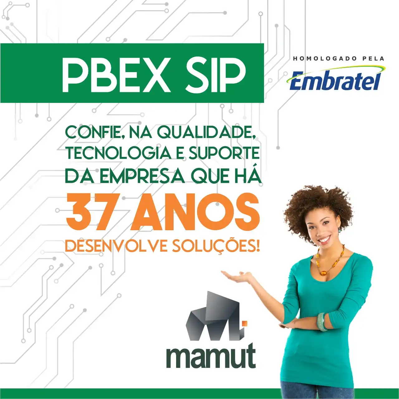 Propaganda Empresa de Telecomunicação sobre PBX SIP Tipo: Propaganda para Rede SocialCliente: MamutTema: Telecomunicação sobre PBX SIPCores: Verde, laranja e azulMensagem: Propaganda, para empresa de telecomunicação, sobre PBX SIP; Homologado pela Embratel; Confie na qualidade, tecnologia e suporte da empresa que há 37 anos, desenvolve soluções.