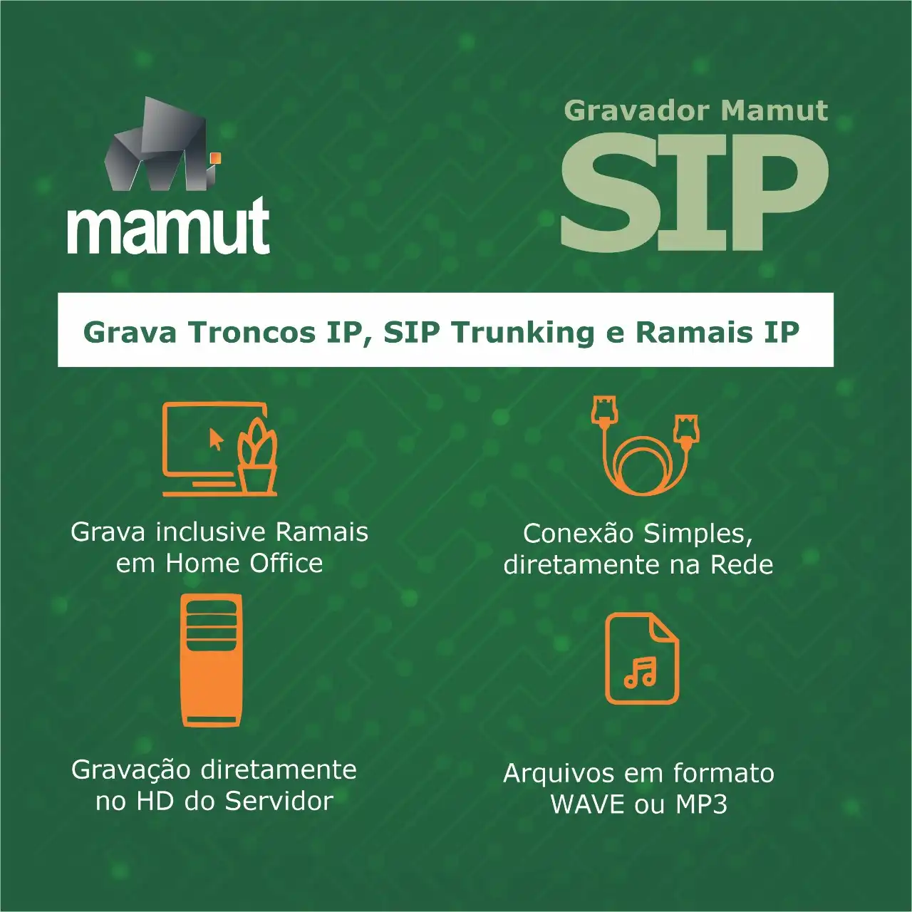 Propaganda Gravador SIP telefônico integrado para Empresa Tipo: Propaganda para Rede Social Segmento: TelefônicoCliente: MamutCores: Verde e Laranja Texto na Publicidade: Grava troncos IP, SIP Trunking e Ramais IP – Grava inclusive ramais em home office- Conexão simples direto na rede – Gravação diretamente no HD do servidor – Arquivos em formato WAVE ou MP3