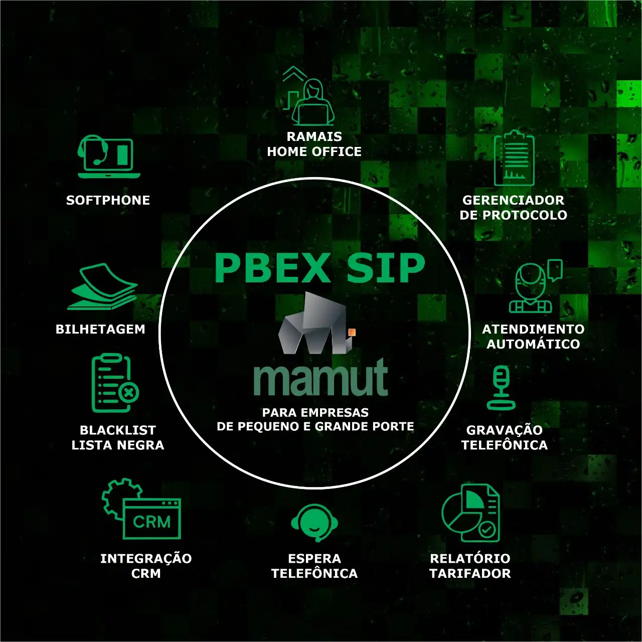Propaganda PBEX para empresas de pequeno de grande porte solução em telecomunicação Tipo: Propaganda para Rede SocialSegmento: TelecomunicaçãoCliente: MamutCores: Preto e Verde Texto na Publicidade: Para empresas de pequeno e grande porte = ramais home office, gerenciador de protocolo, atendimento automático, gravação telefônica, relatório tarifador, espera telefônica, integração crm, blacklist lista negra, bilhetagem, softphone