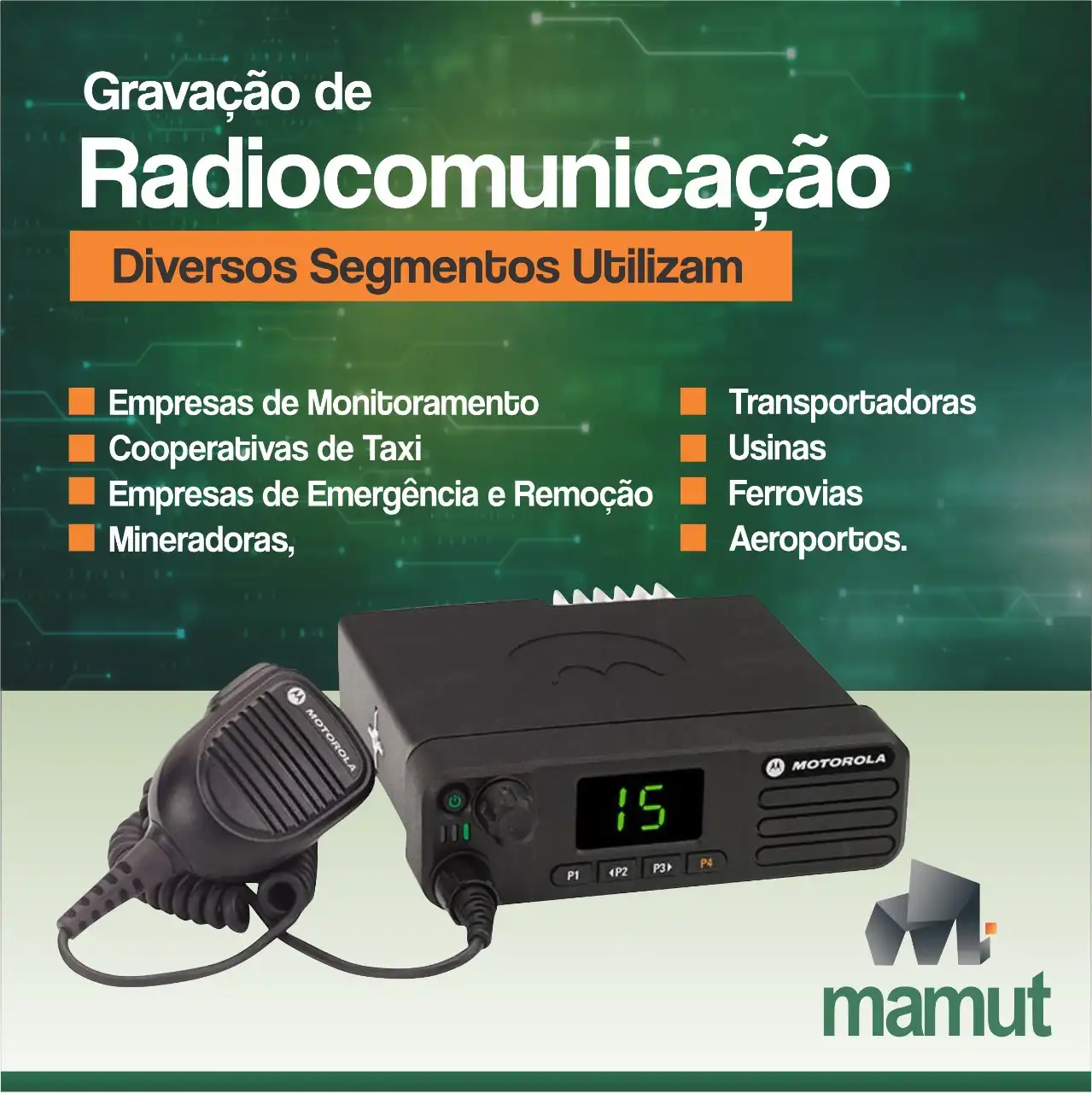 Propaganda Post Gravação de Radiocomunicação Tipo: Propaganda para Rede SocialCliente: MamutTema: Gravação de rediocomunicaçãoCores: Branco, laranja e vermelhoMensagem: Diversos seguimentos utilizam: Empresa de monitoramento; Cooperativas de taxi; Empresas de emergência e remoção; Mineradoras; Transportadoras; Usinas; Ferrovias; Aeroportos;