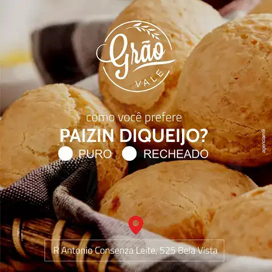 Mensagem: como você prefere nosso pãozinho de queijo, puro ou recheado.