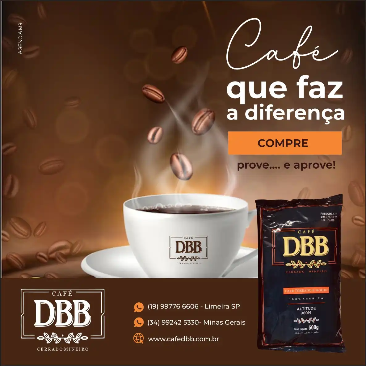 Propaganda Post Café em Grão Saboroso na XÃcara Tipo: Propaganda para Rede SocialSegmento: CaféCliente: Café DBBCores: Laranja e MarromTexto na Publicidade: Café que faz a diferença compre , prove… e aprove !