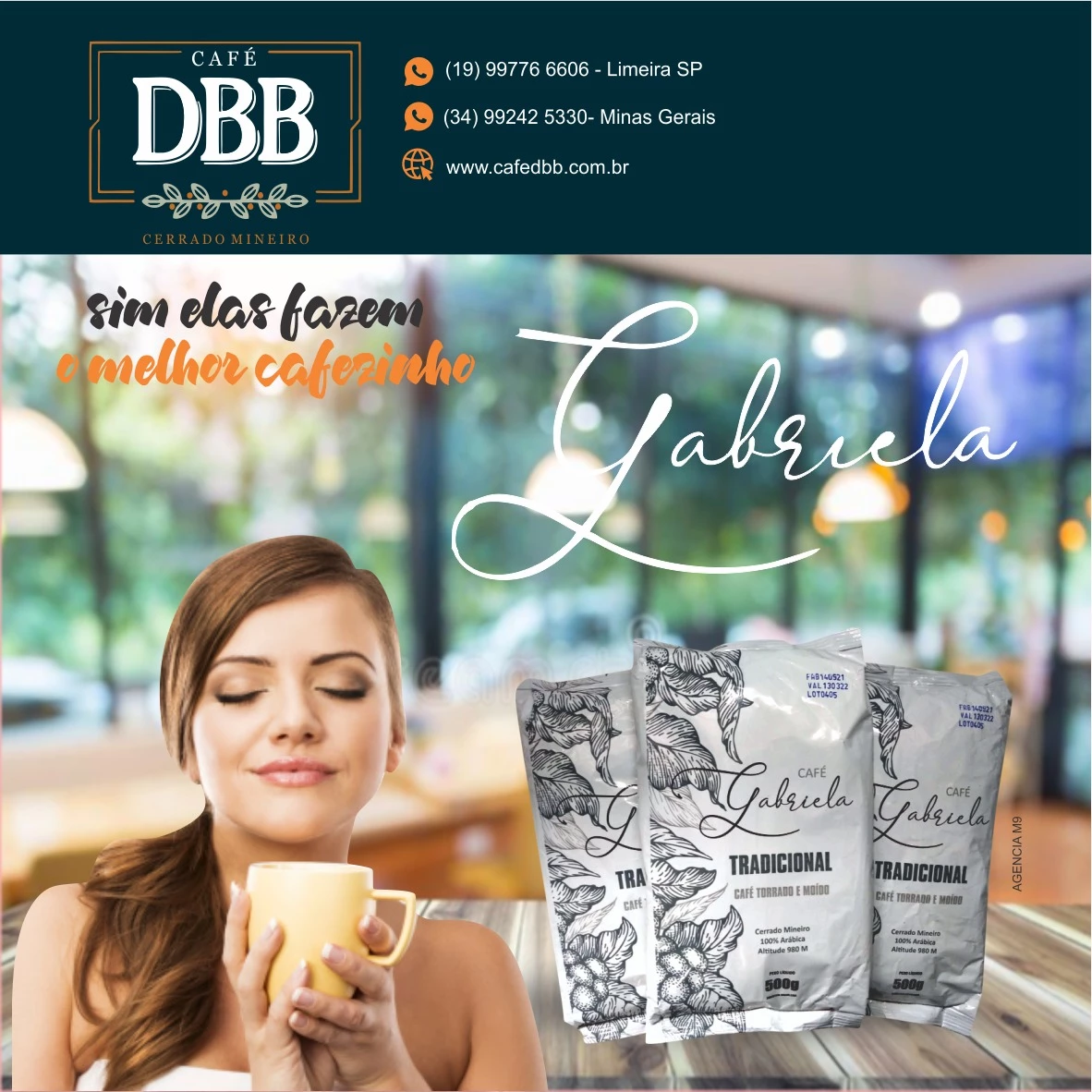 Propaganda de Café Homenageando as Mulheres Tipo: Propaganda Redes SociaisSegmento: CaféCliente: DBBCores: Azul e LaranjaTexto na Publicidade: Sim elas fazem o melhor cafezinho Gabriela