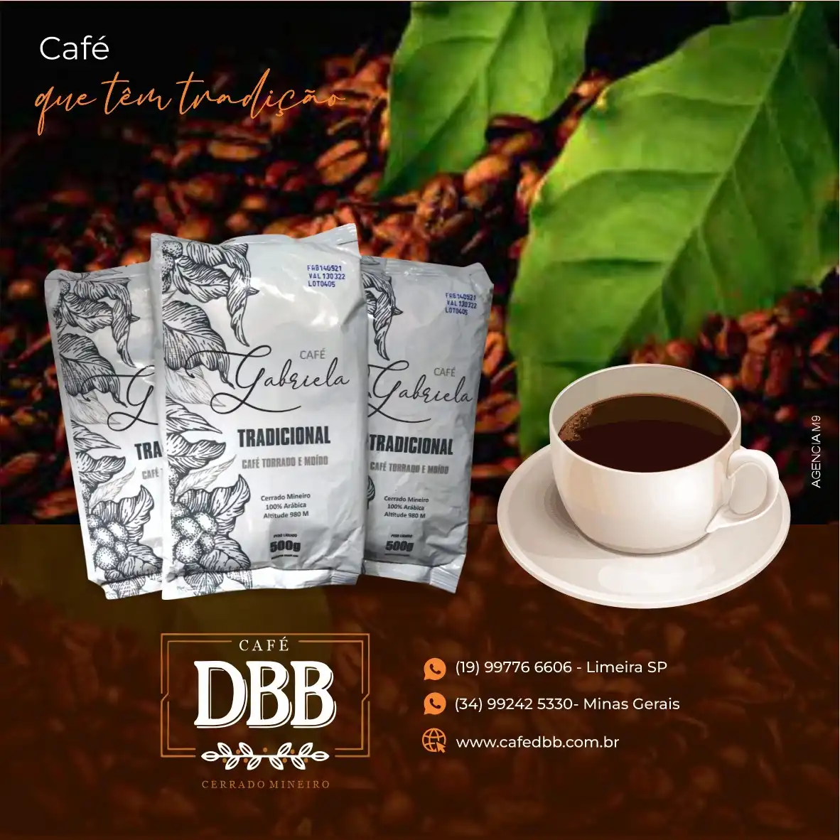 Propaganda de Café que tem tradição Tipo: Propaganda para Rede SocialCliente: Café DBBCores: Marrom, Branco e Laranja Texto na Publicidade:Café que tem tradição , Café DBB Cerrado Mineiro
