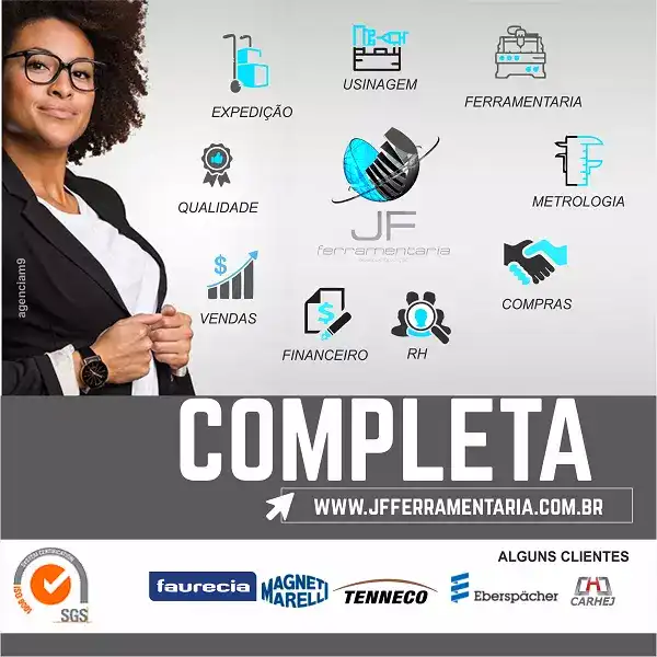 Propaganda Post Ferramentaria CNC Tipo: Propaganda para Rede SocialCliente: JF FerramentariaTema: Ferramentaria CNC, Cores: Laranja, preto e azulMensagem: Propaganda, para ferramentaria e usinagem de precisão, especializada no setor automotivo, com 22 anos de experiência, um ferramentaria com excelência, contendo selo ISO 9001, acesso o site: www.jfferramentaria.com.br.