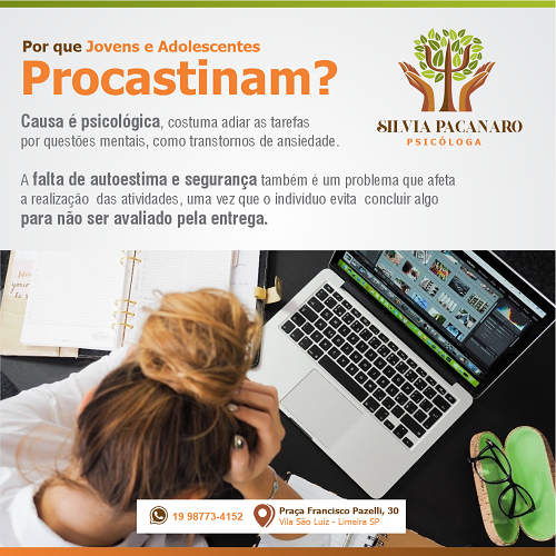 Propaganda para Psicoterapeuta sobre Procrastinação de Jovens e Adolescentes e Psicoterapia Tipo: Propaganda para Rede SocialSegmento: Psicologia, Psicoterapeuta, PsicoterapiaTema: ProcrastinaçãoCliente: Psicóloga Silvia Pacanaro