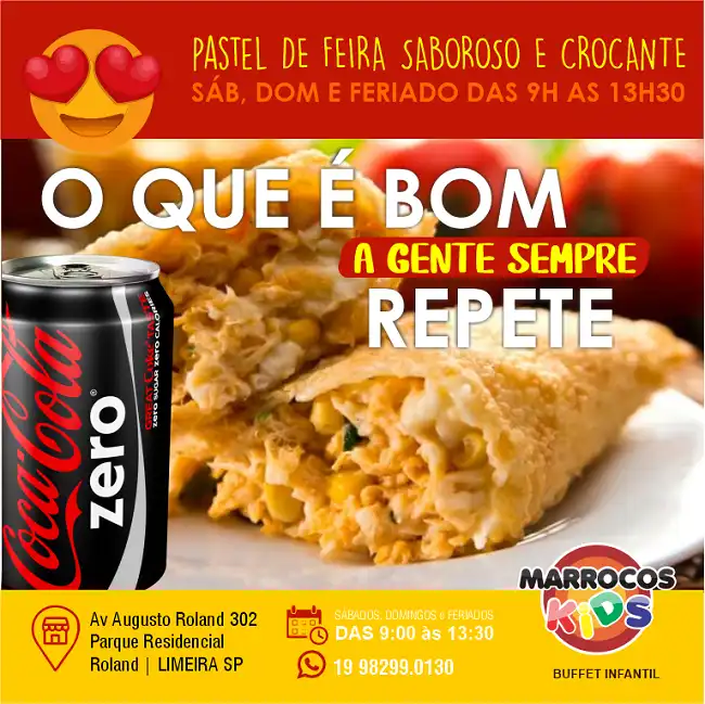Mensagem: Pastel de Feira saboroso e crocante. O que é bom a gente sempre repete.