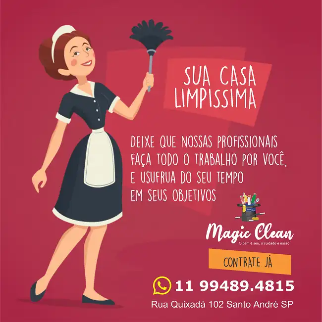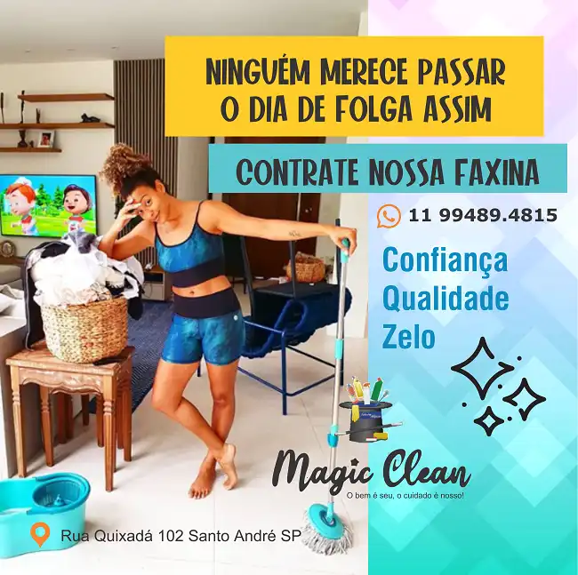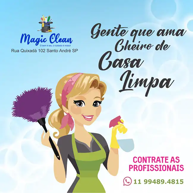 Propaganda Serviços de Profissionais de Limpeza Tipo: Propaganda Rede Social Segmento: Limpeza, Profissionais de Limpeza, Faxina Tema: Serviços de Profissionais de Limpeza Cores: Rosa, Amarelo e Branco Cliente: Magic Clen serviços de limpeza Mensagem: Sua Casa LimpÃssima! Deixe que nossas profissionais façam todo o trabalho por você e usufrua do seu tempo em seus objetivos. … Ler mais Propaganda Serviços de Profissionais de Limpeza