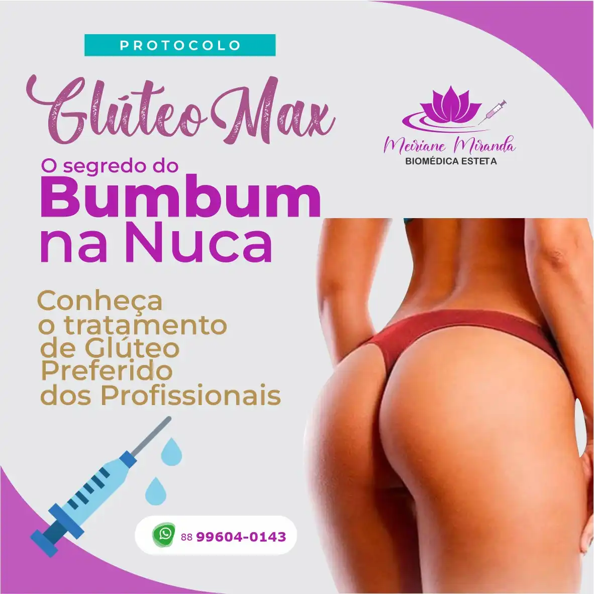 Propaganda Post Procedimento Bumbum na Nuca com aplicação Estética Corporal Tipo: Propaganda para Rede SocialCliente: Meiriane Miranda Biomédica EstetaTema: Estética corporalCores: Rosa e brancoMensagem: Glúteo max, o segredo do bumbum na nuca, conheça o tratamento de glúteo preferido dos profissionais.